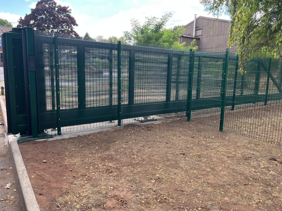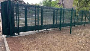 - 18 mtr of 2000 mm-high Defender 358 mesh fencing to form a secure enclosure around a sliding gate area.