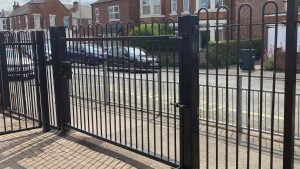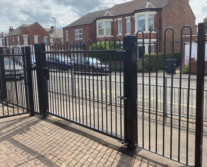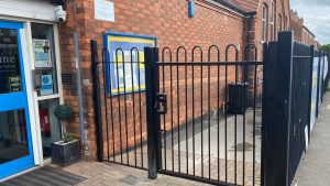 Further improvements included the installation of a second single leaf gate, 1460mm wide, and a 1000mm infill panel to effectively close off the area between the new gate and the school building.