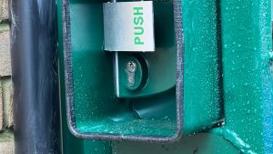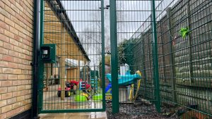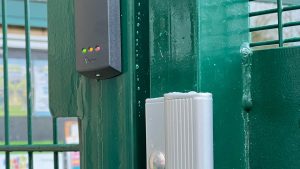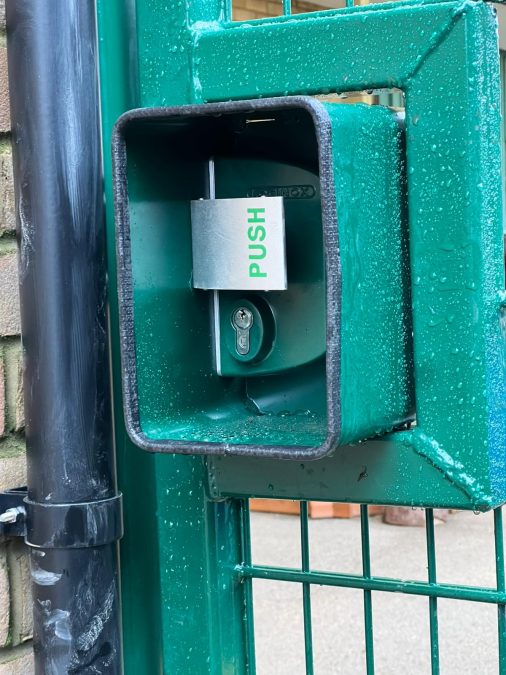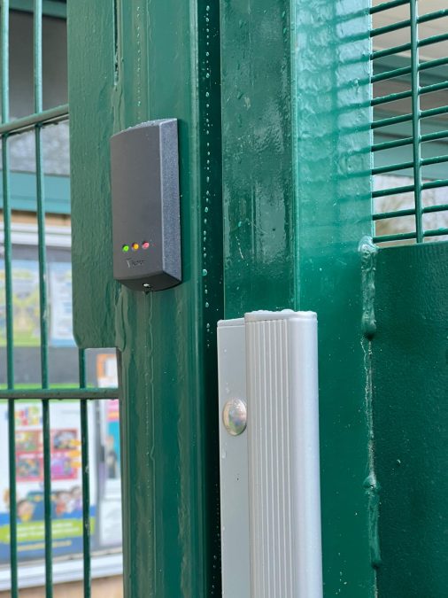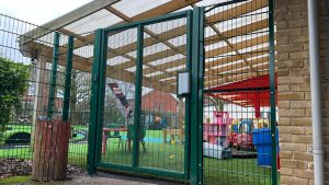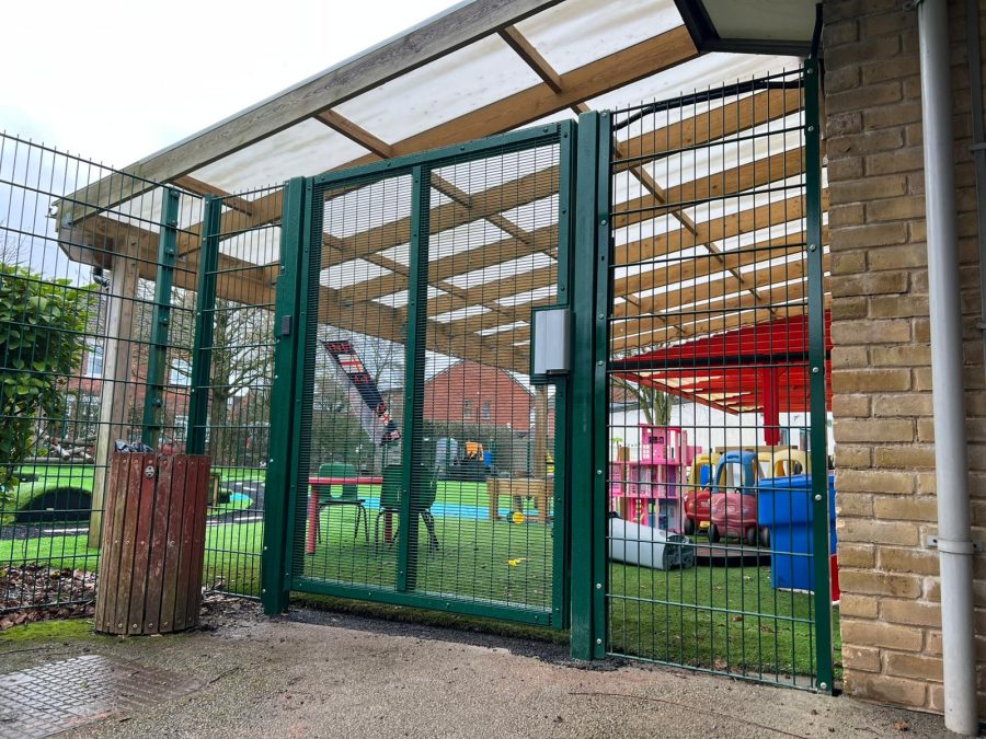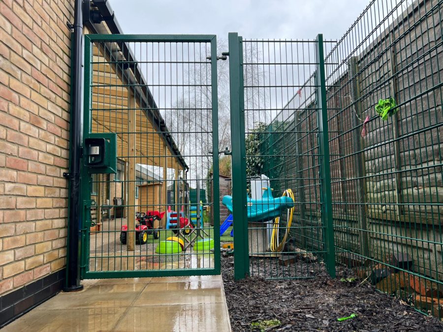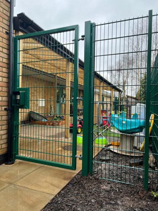 The nursery gate installation included a maglock system with double-sided handles and proximity reader access control. This ensures authorised entry while maintaining safe egress, aligning with modern school safeguarding requirements.