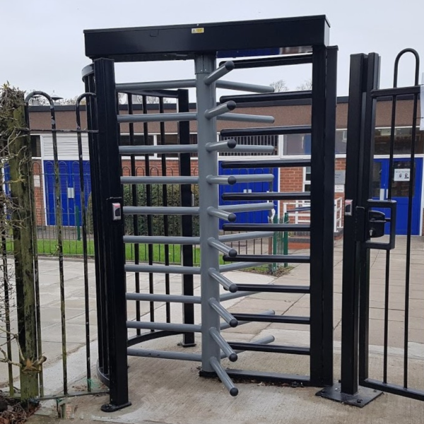 The full height security turnstile creates a managed entry and exit point for staff, students and authorised visitors. An automated gate can be included as an option to provide controlled flexibility, allowing the turnstile to be bypassed when authorised or operationally required. All turnstiles are fully enclosed at the top to prevent climbing and unauthorised access.