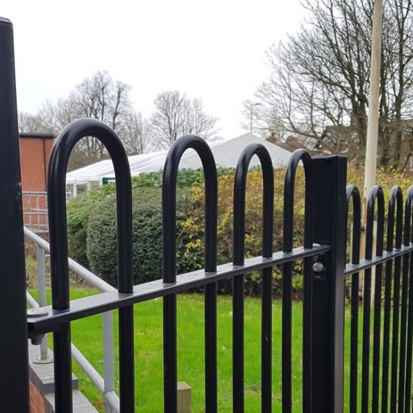 Bow top railings are available in heights from 0.6m to 2.0m.